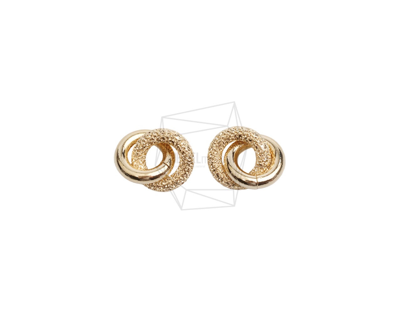 PDT-2721-G/2PCS/Double Round Earring Charm/ 13.5mm X 20.4mm/Gold Plated Over Brass