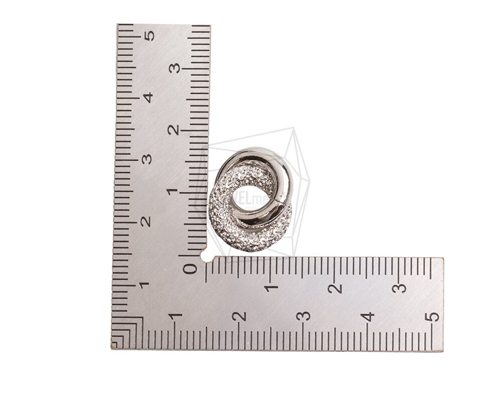 PDT-2721-R/2PCS/Double Round Earring Charm/ 13.5mm X 20.4mm/Rhodium Plated Over Brass