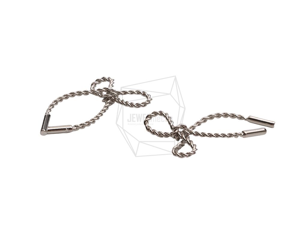 PDT-2722-R/2PCS/Rope Ribbon Pendant/21mm X 30mm/Rhodium Plated Over Brass