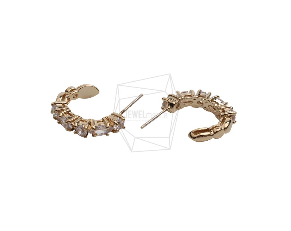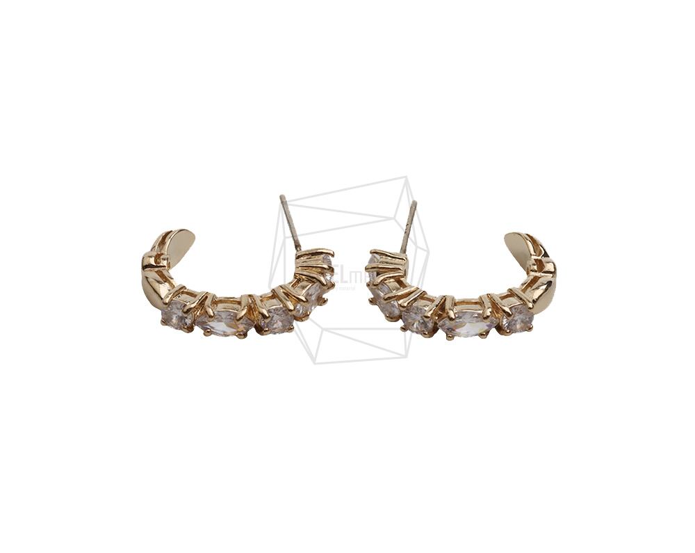 ERG-2544-G/2PCS/Cubic Round Post Earrings/14.6mm X 19.2mm/Gold Plated Over Brass,silver post