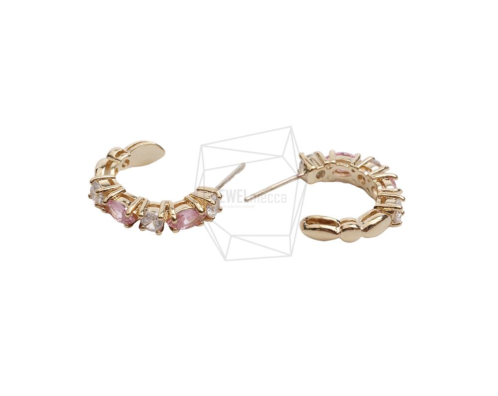 ERG-2545-G/2PCS/Cubic Round Post Earrings/14.6mm X 19.2mm/Gold Plated Over Brass,silver post