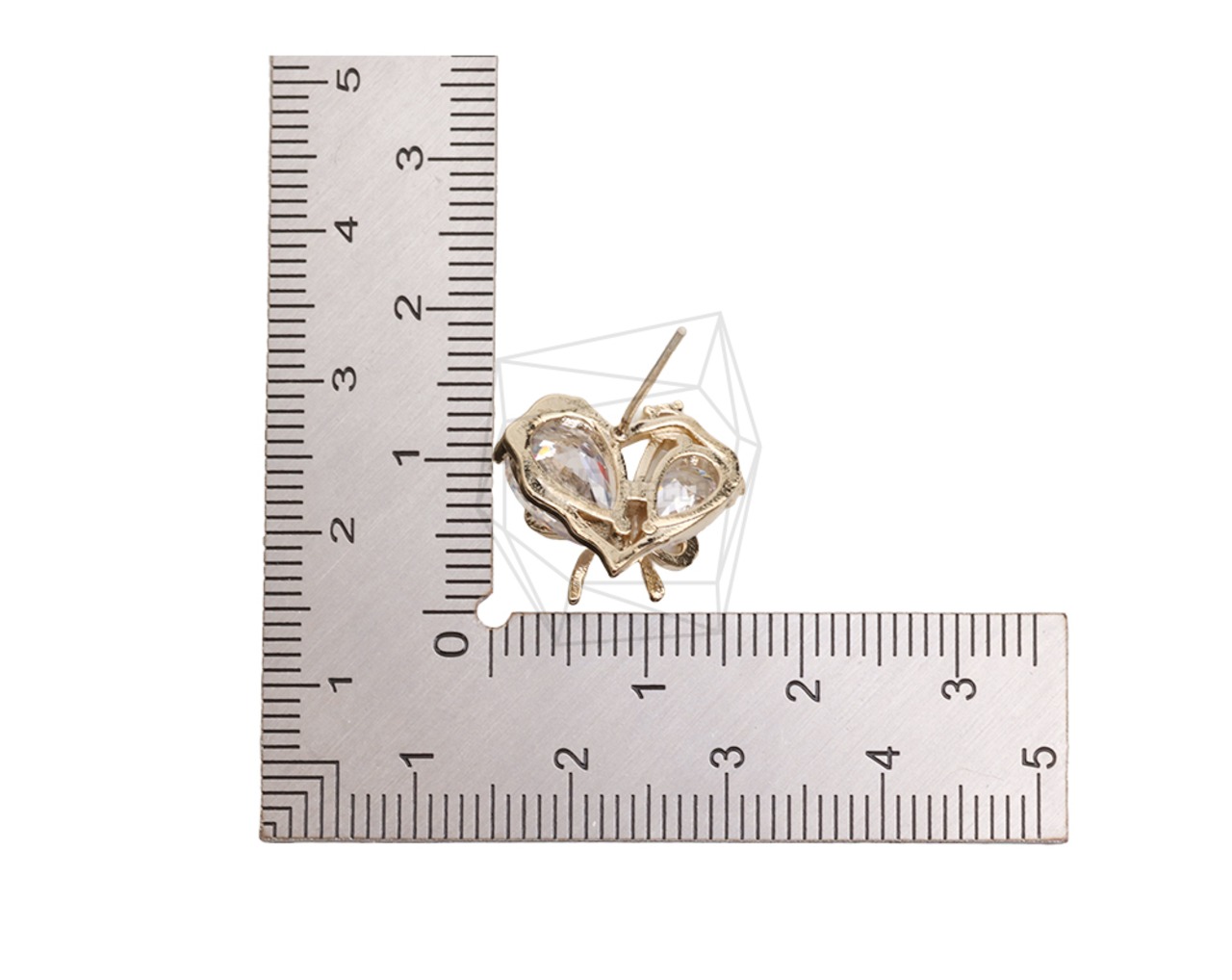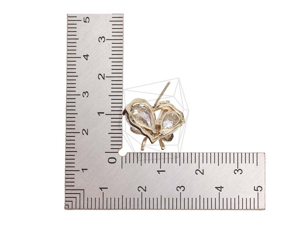 ERG-2546-G/2PCS/Cubic Heart Post Earrings/13mm X 16.5mm/Gold Plated Over Brass,silver post