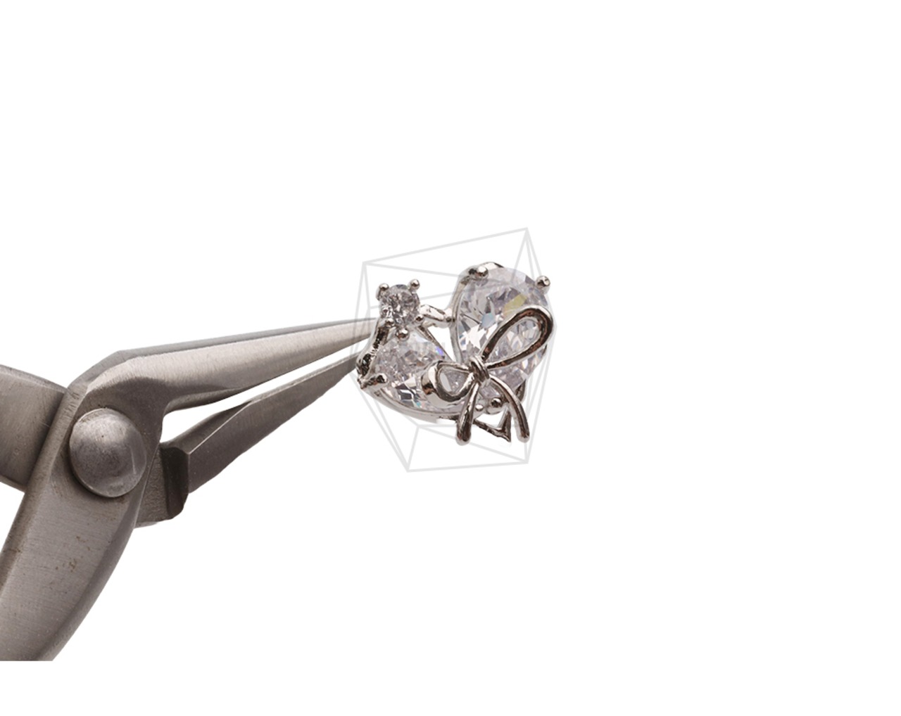 ERG-2546-R/2PCS/Cubic Heart Post Earrings/13mm X 16.5mm/Rhodium Plated Over Brass,silver post