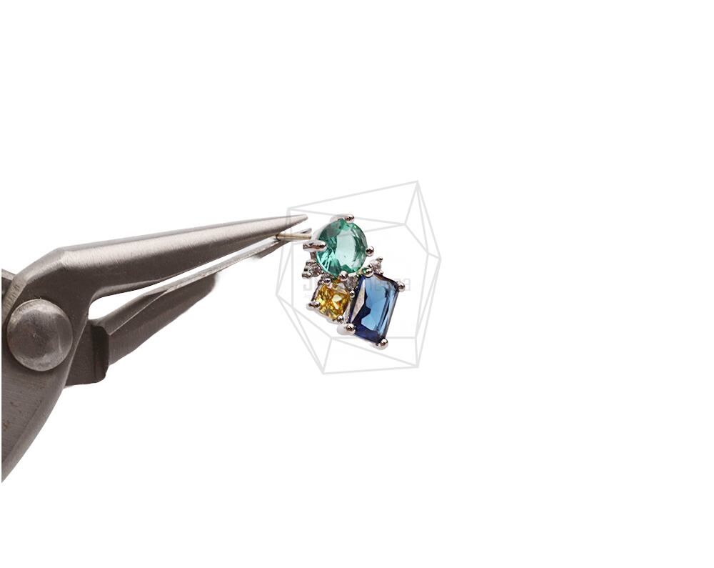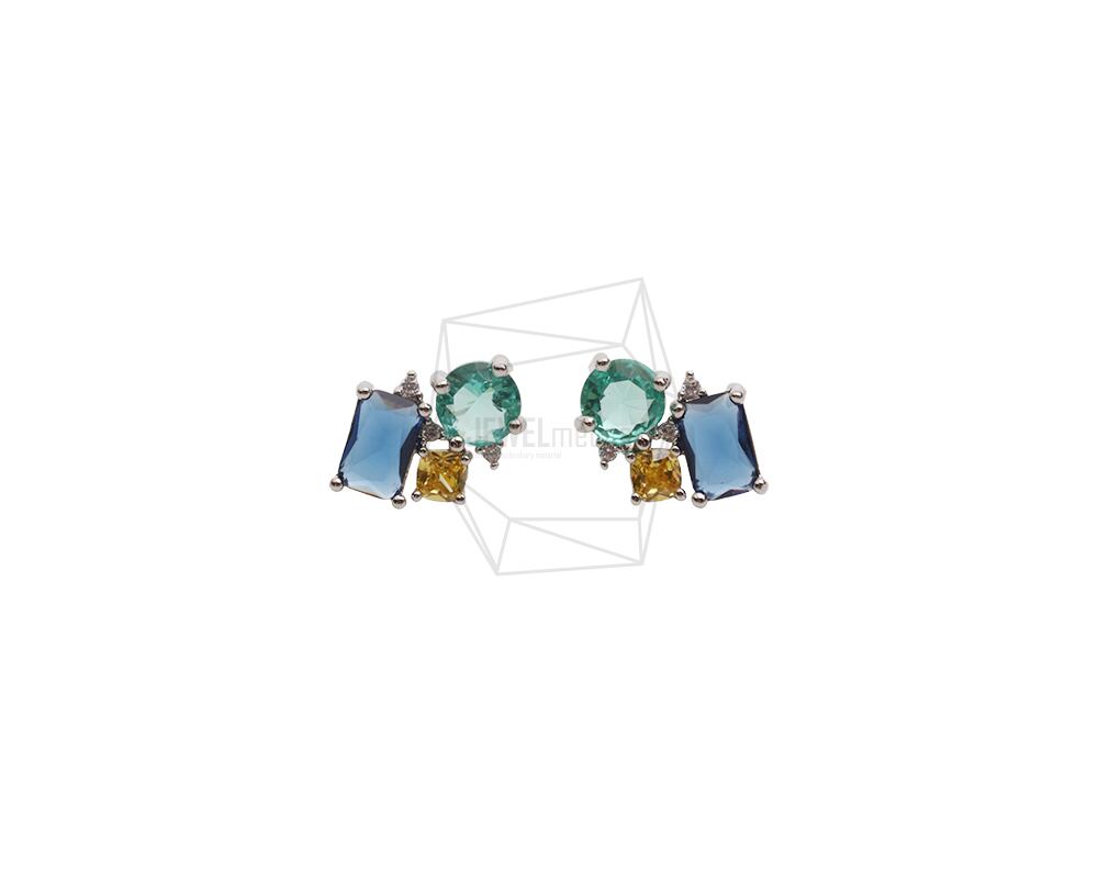 ERG-2548-R/2PCS/Cubic Square Post Earrings/ 9mm X 12.7mm/Rhodium Plated Over Brass,silver post