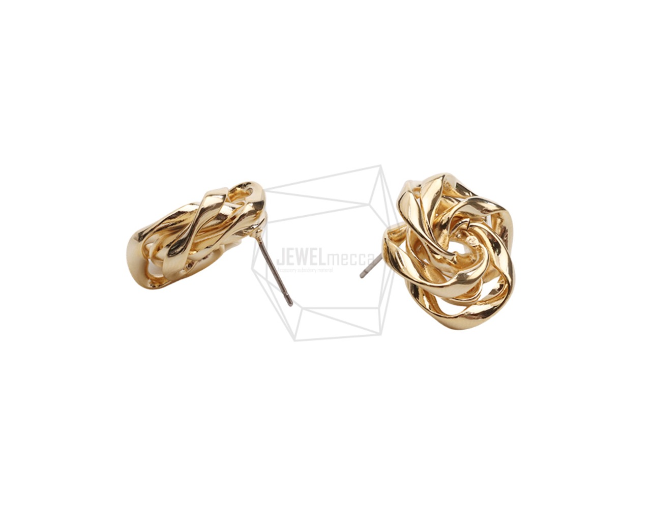 ERG-2552-G/2PCS/Swirl Post Earrings/ 20mm X 20mm/Gold Plated Over Brass,Stainless Post