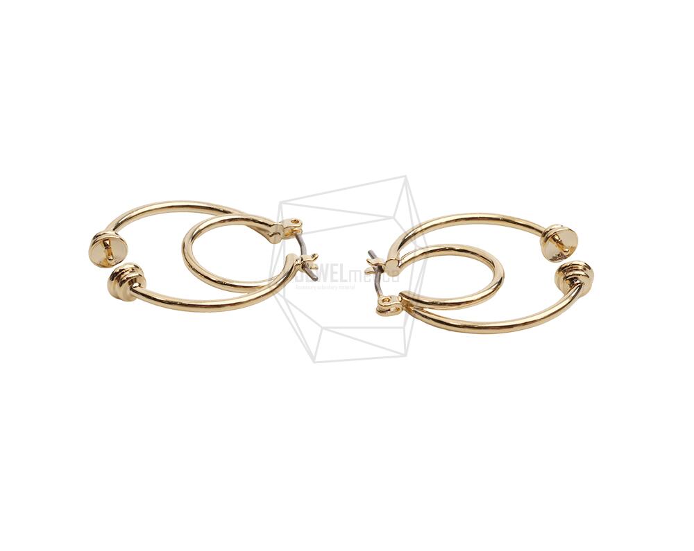 ERG-2553-G/2PCS/Double round Post Earring/25mm X 28mm/Gold Plated Over Brass, Stainless Post