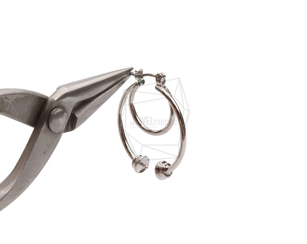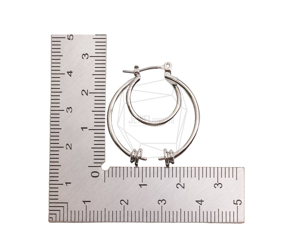 ERG-2553-R/2PCS/Double round Post Earring/25mm X 28mm/Rhodium Plated Over Brass, Stainless Post