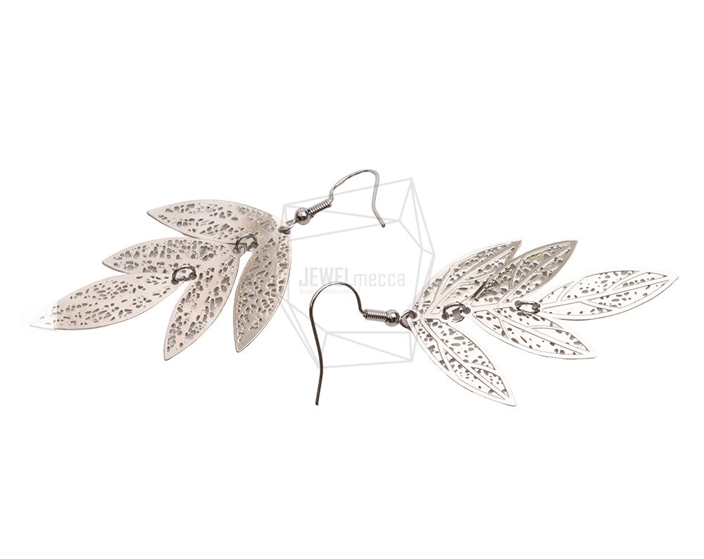 ERG-2554-R/2PCS/Multi-Petal Hook Earring Post Earring/32mm X 68mm/Rhodium Plated Over Brass