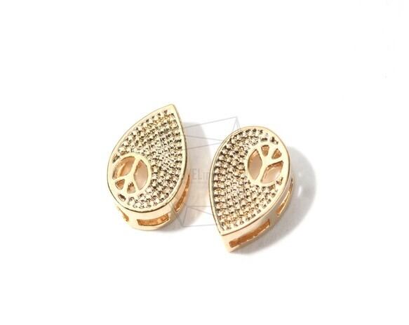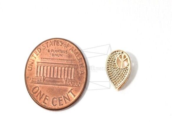 Tear Drop Peace Sign Charm-Dots Textured Teardrop Peace Pendant-Through Type Connector-studded Tear drop Peace Charm-Peace Connector