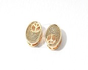 Oval Peace Sign Charm-Dots Textured Oval Peace Pendant-Through Type Connector-Studded Egg Shaped Peace Charm-Peace Connector