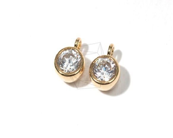 PDT-022-G【4個入り】ラウンドキュービックジルコニアチャーム/Round Cubic Zirconia