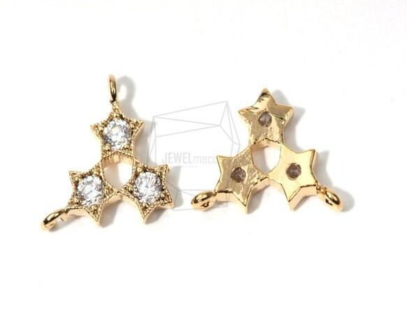CNT-016-G【4個入り】CZトリプルスターコネクタ,Cubic Zirconia Three Star Charm
