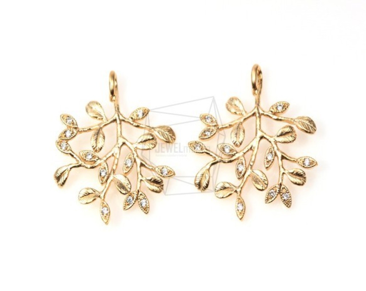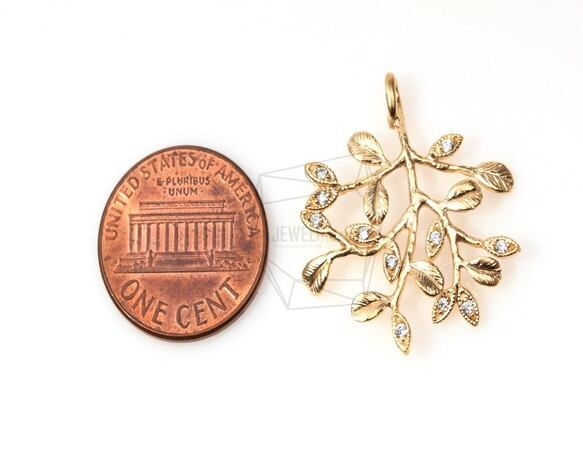 PDT-104-MG【2個入り】リーフペンダントCZ木の枝,CZ Tree Branch with Leaf Pendant
