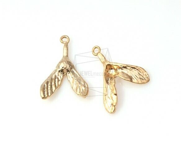 PDT-156-MG【4個入り】テールペンダント,紅葉の種子チャーム,Maple seed Pendant