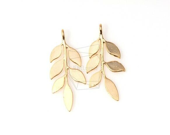 PDT-157-MG【4個入り】羽状の葉のペンダント,Pinnate Leaf Pendant/ 12mm x 23mm