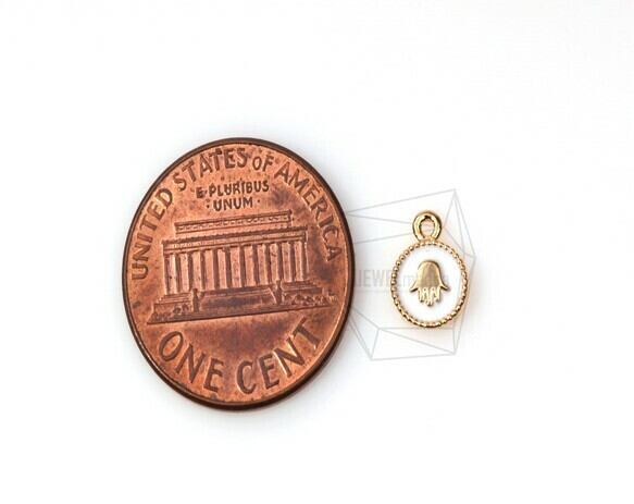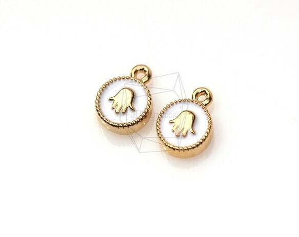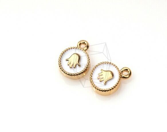 PDT-191W-G【4個入り】ホワイトエポキシハムサハンドラウンド,White Epoxy Hamsa Hand Round/ 6mm
