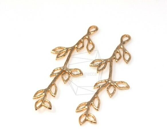 PDT-218-MG【2個入り】枝葉ペンダント,Leaf Branch Pendant/ 18mm x 48mm