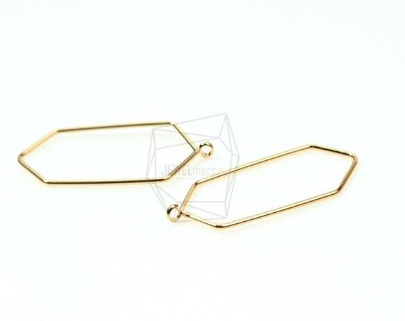 PDT-236-G/4Pcs-Hexagon Shape Pendant/ 15mm x 43mm / Gold Plated over brass