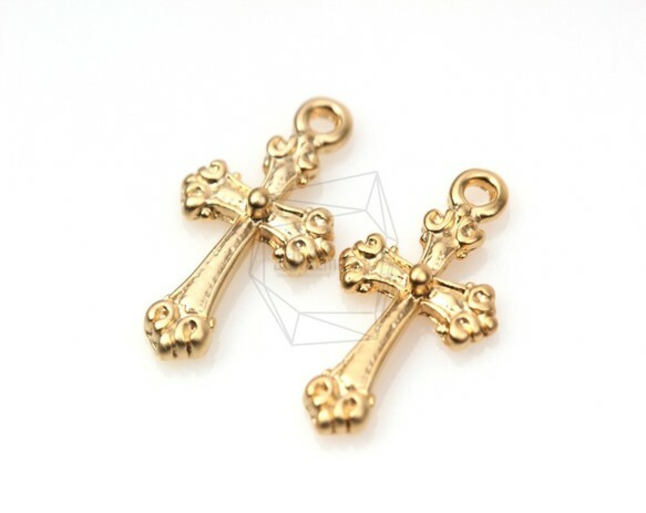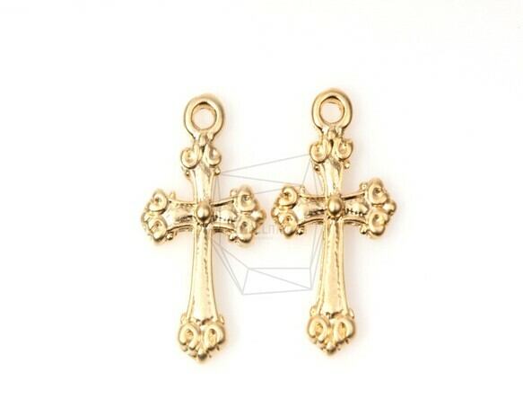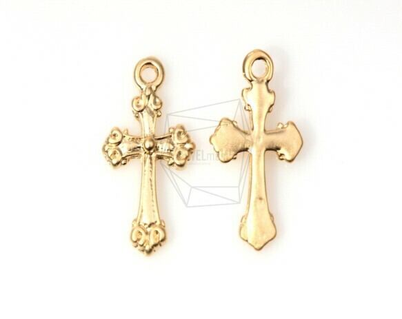 PDT-242-MG/4Pcs-Cross Pendant/ 10mm x 18mm / Matte Gold Plated over tin
