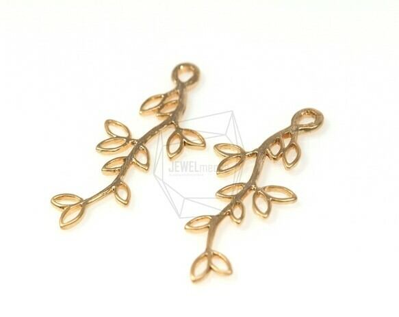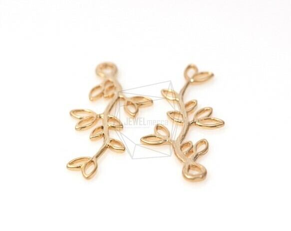 PDT-267-MG/4Pcs-Leaf Branch Pendant/ 16mm x 36mm /Matte Gold Plated over brass
