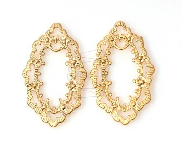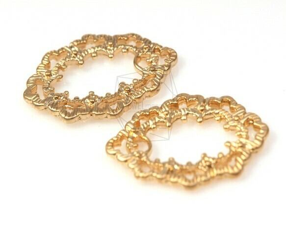 PDT-270-MG/2Pcs-Lace Antique Oval Pendant/ 20mm x 28mm /Matte Gold Plated over Pewter