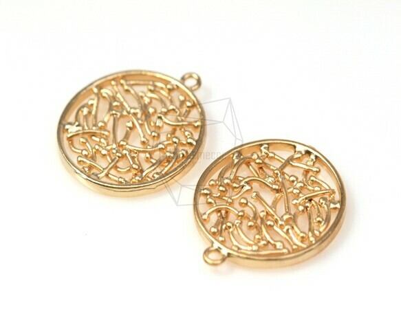 PDT-271-MG/2Pcs-circle Pendant/ 19mm x 21mm /Matte Gold Plated over brass