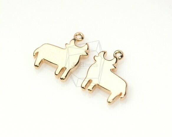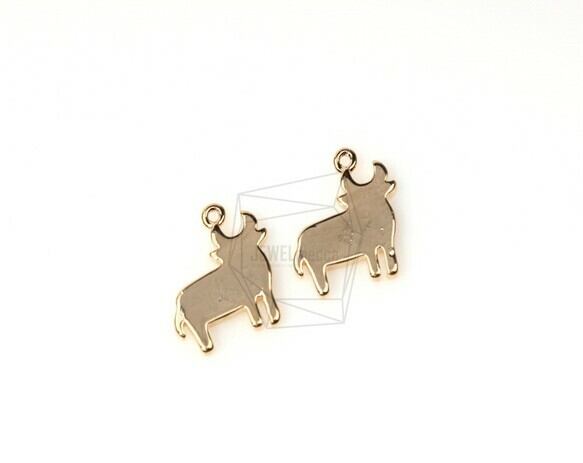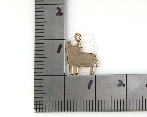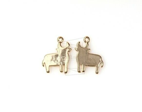 PDT-282-G/2Pcs-Flat Cow Shadow Pendant/ 11mm x 11mm / Gold Plated over brass