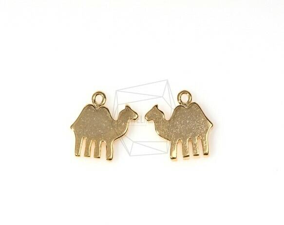 PDT-289-G/2Pcs-Flat Camel Shadow Pendant/ 10mm x 10mm / Gold Plated over brass