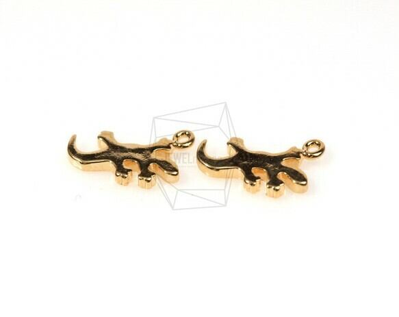 PDT-293-G/2Pcs-Flat Lizard Shadow Pendant/ 6mm x 12mm / Gold Plated over brass