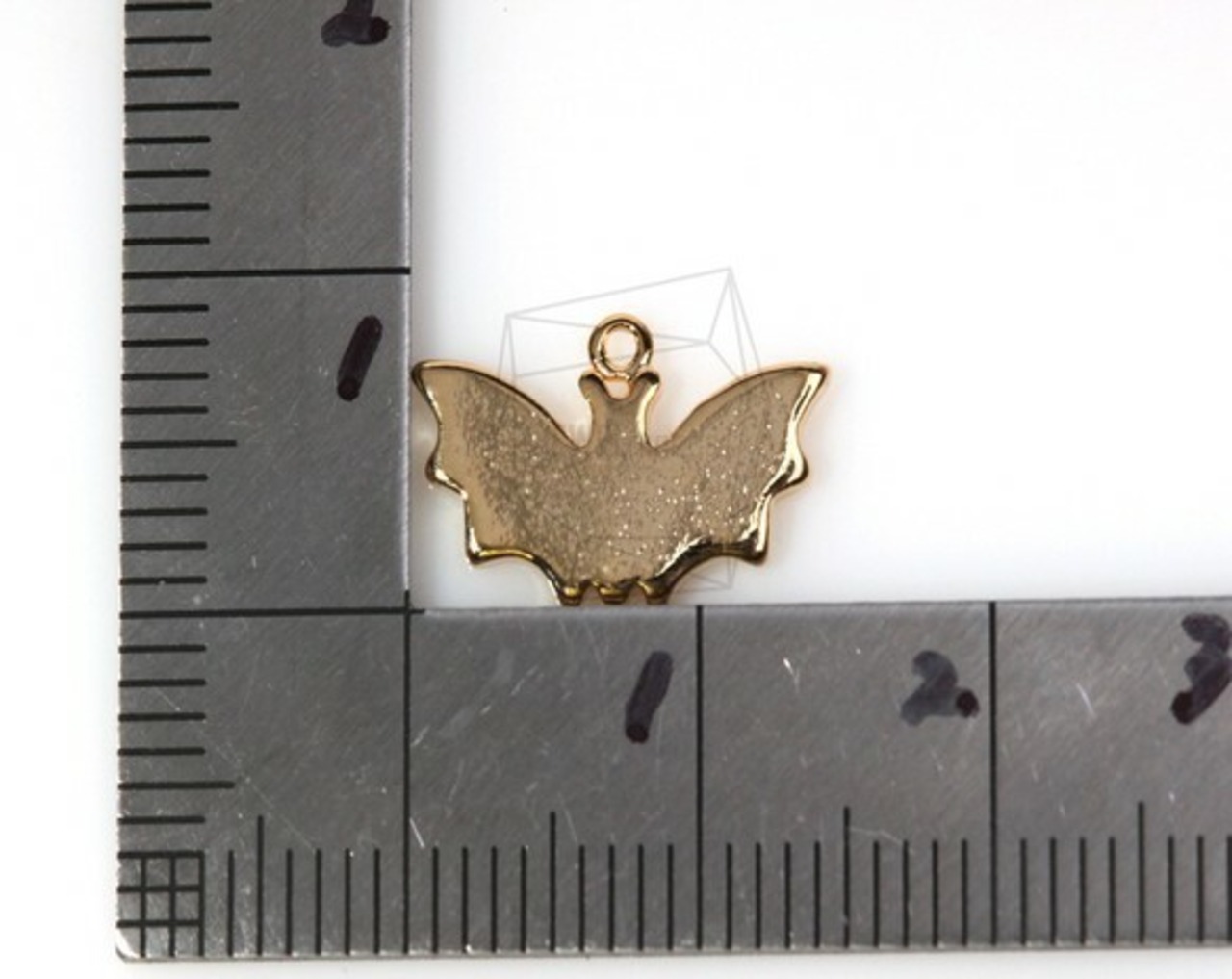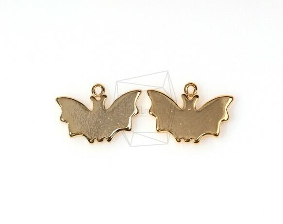 PDT-294-G/2Pcs-Flat bat Shadow Pendant/ 8mm x 14mm / Gold Plated over brass