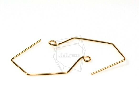 ERG-042-G/6Pcs-French Ear wire/ 18mm x 33mm/Gold Plated over Brass
