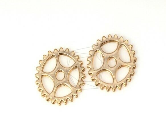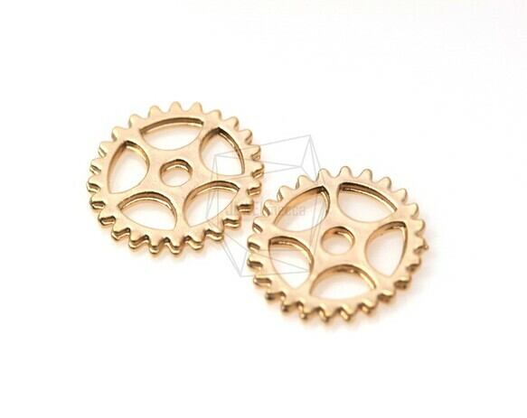 PDT-308-MG/4Pcs-Cogwheel Watch Gear Pendant/ 15mm x 15mm / Matte Gold Plated over brass