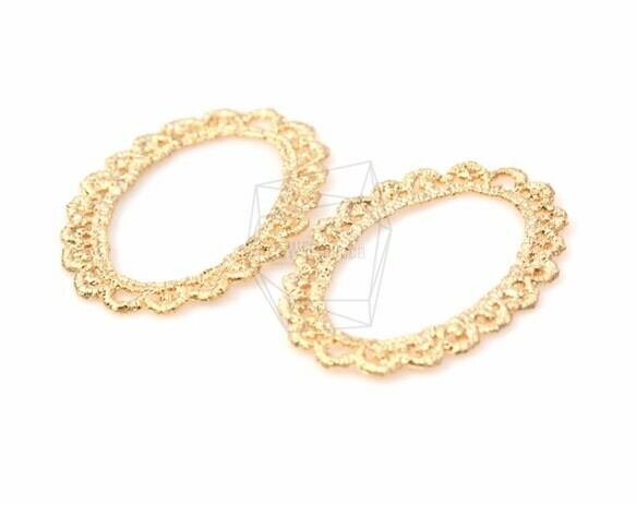 CNT-067-MG/4Pcs-Oval Lace Pendant/ 32mm x 42 mm / Matte Gold Plated over Pewter
