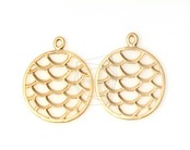 PDT-301-MG/4Pcs- Wave Round Pendant/ 22mm x 22 mm / Matte Gold Plated over Pewter
