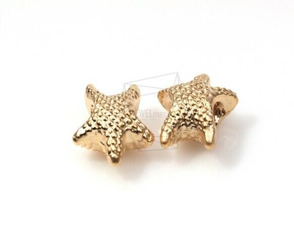 PDT-305-MG/4Pcs- 3D starfish Pendant/ 12mm x 13 mm / Matte Gold Plated over Pewter
