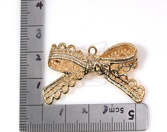 PDT-307-MG/2Pcs- Lace Ribbon Bow Pendant/ 23mm x 44mm / Matte Gold Plated over Pewter
