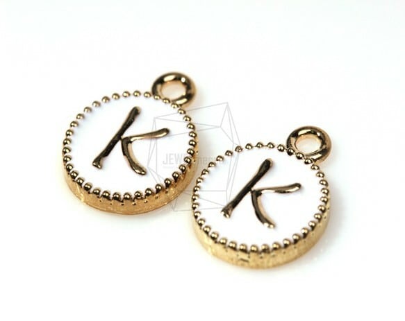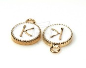 PDT-317K-G/2Pcs-Round Epoxy Initial K/ 14.5mm x 19.5mm /Gold Plated over brass