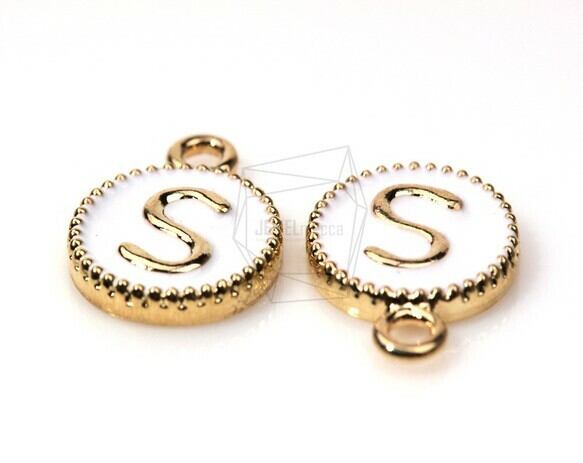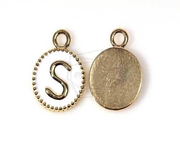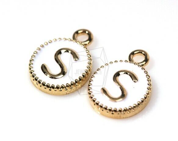 PDT-317S-G/2Pcs-Round Epoxy Initial S/ 14.5mm x 19.5mm /Gold Plated over brass
