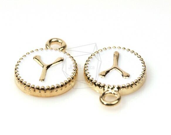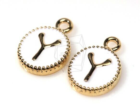 PDT-317Y-G/2Pcs-Round Epoxy Initial Y/ 14.5mm x 19.5mm /Gold Plated over brass