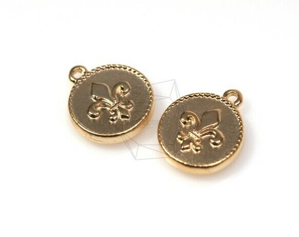 PDT-220-MG/4Pcs-Fleur De Lys Round / 12mm /Matte Gold Plated over Pewter