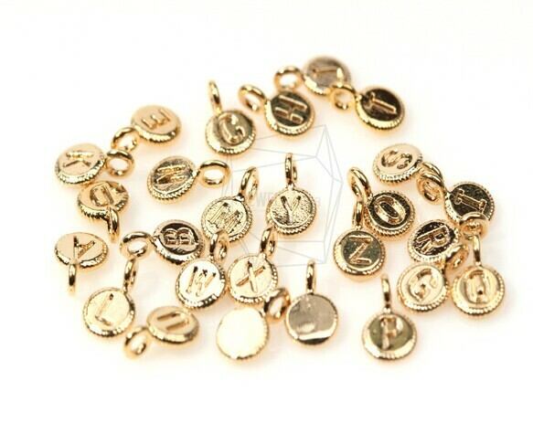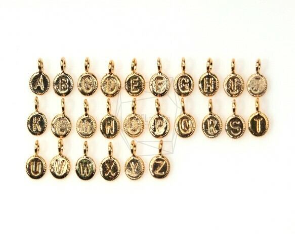 PDT-343-G/4Pcs-Coin Initial "A~Z"/ Round Initial Pendant/4.5mm x 6.5mm / Gold Plated over brass
