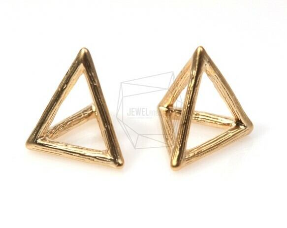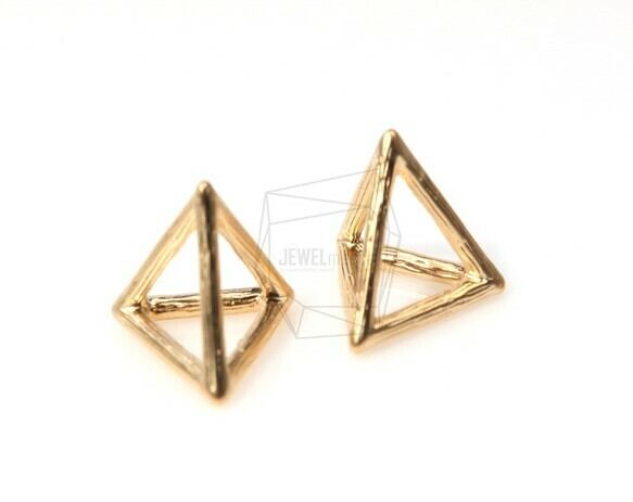 PDT-340-MG/2Pcs-3D Triangle Pyramid Pendant/ 15mm x 15mm /Matte Gold Plated over brass