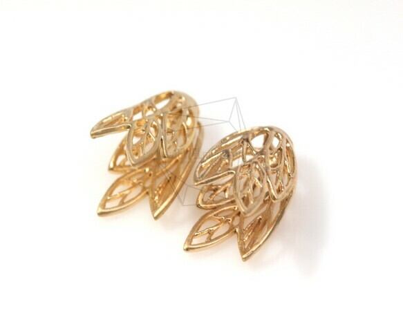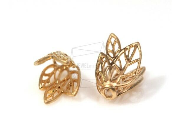 PDT-335-MG/4pcs-Leaf,Beads Cap/10mm x 15mm /Matte Gold Plated over brass