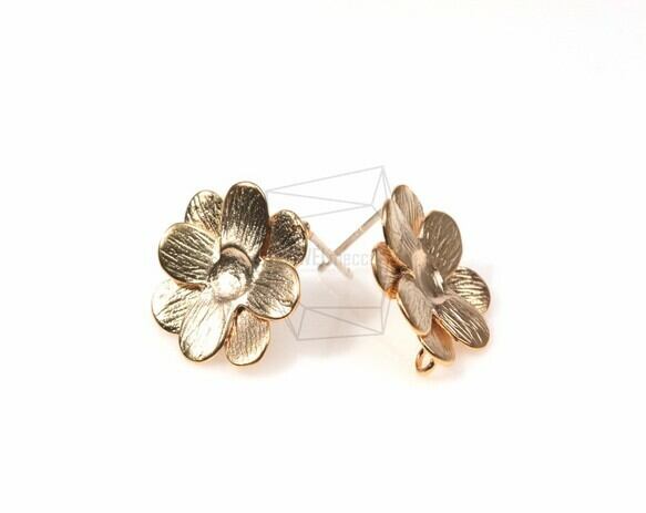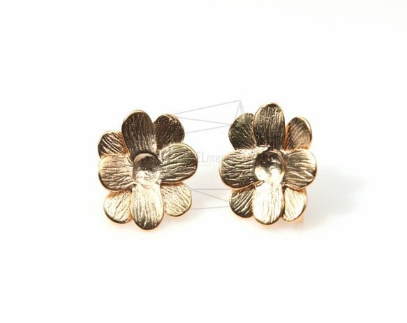 ERG-049-MG/4Pcs-Petals Double Layer Flower Ear Post/ 11mm x 11mm /Gold Plated over Brass/925 sterling silver post