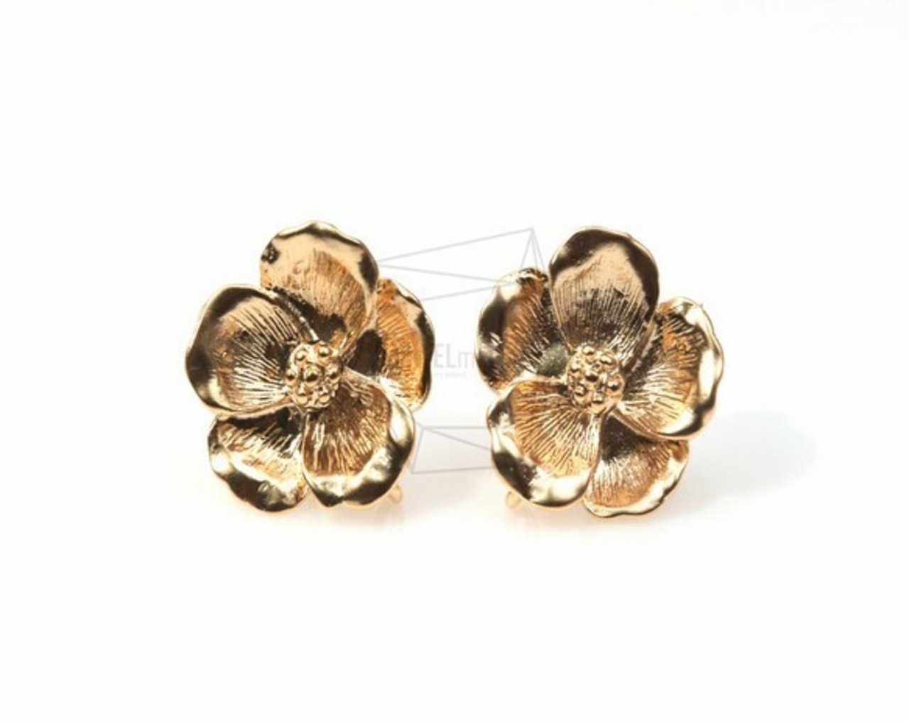 ERG-048-MG/4Pcs-five Petal Flower Ear Post/ 18mm x 18mm /Gold Plated over Brass/925 sterling silver post