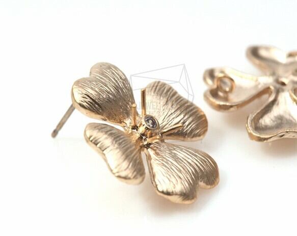 ERG-050-MG/4Pcs-Cubic Zirconia Setting Four Petal Flower Ear Post/ 20mm x 21mm /Gold Plated over Brass/925 sterling silver post