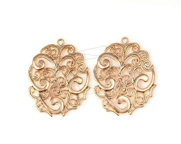 PDT-376-MG/2Pcs-Swirl Floral Round Pendant/ 25mm x 25mm /Matte Gold Plated over brass
