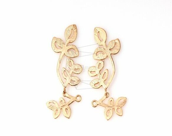 PDT-346-MG/2Pcs-leaf Pendant/ 16mm x 32mm /Matte Gold Plated over brass