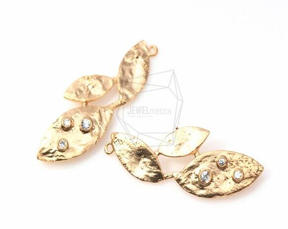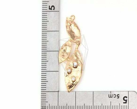PDT-347-MG/2Pcs-CZ leaf Pendant/ 14mm x 38mm /Matte Gold Plated over brass
