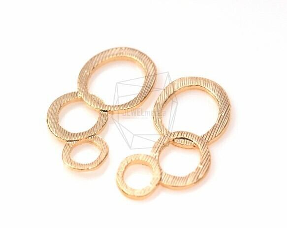 PDT-351-MG/4Pcs-Triple Round Connector/ 15mm x 28mm /Matte Gold Plated over pewter
